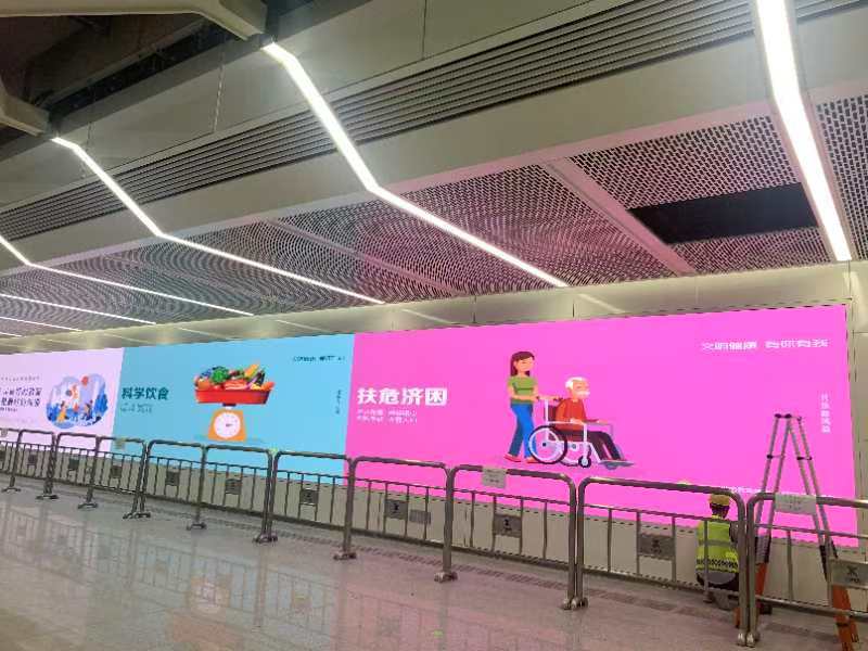地下鉄駅は日々多くの人が行き交う場所であり、そのような人通りの多いエリアにデジタルサイネージを設置することで、広告を効果的に訴求することができます。特に、商業広告としての役割が期待され、通勤・通学中の多くの利用者に対して商品やサービスを印象的にアピールすることが可能です。また、視覚的に魅力的なコンテンツを表示することで、広告効果の最大化が図れるため、ブランド認知の向上や売上促進に大いに貢献することができます。さらに、人手が触れても問題のないGOBコーティングで保護することで、耐久性を高めるとともに、長期にわたって高品質な表示を維持することが可能です。