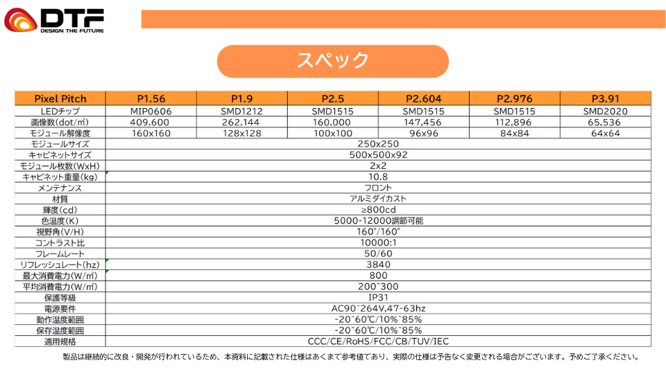 | 製品モデル | P1.9 | P2.6 | P2.9 | P3.9 | P4.8 | P2.9 | P3.9 | P4.8 |