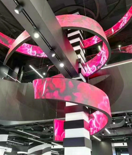LEDの柔軟なソフトスクリーンは厚みが薄く、柔軟性が高いため、自由に曲げられ、様々な形状を作り出せます。キャビネットの厚みと重量は従来のキャビネットに比べて20%以上減少し、輸送と設置コストを削減します。