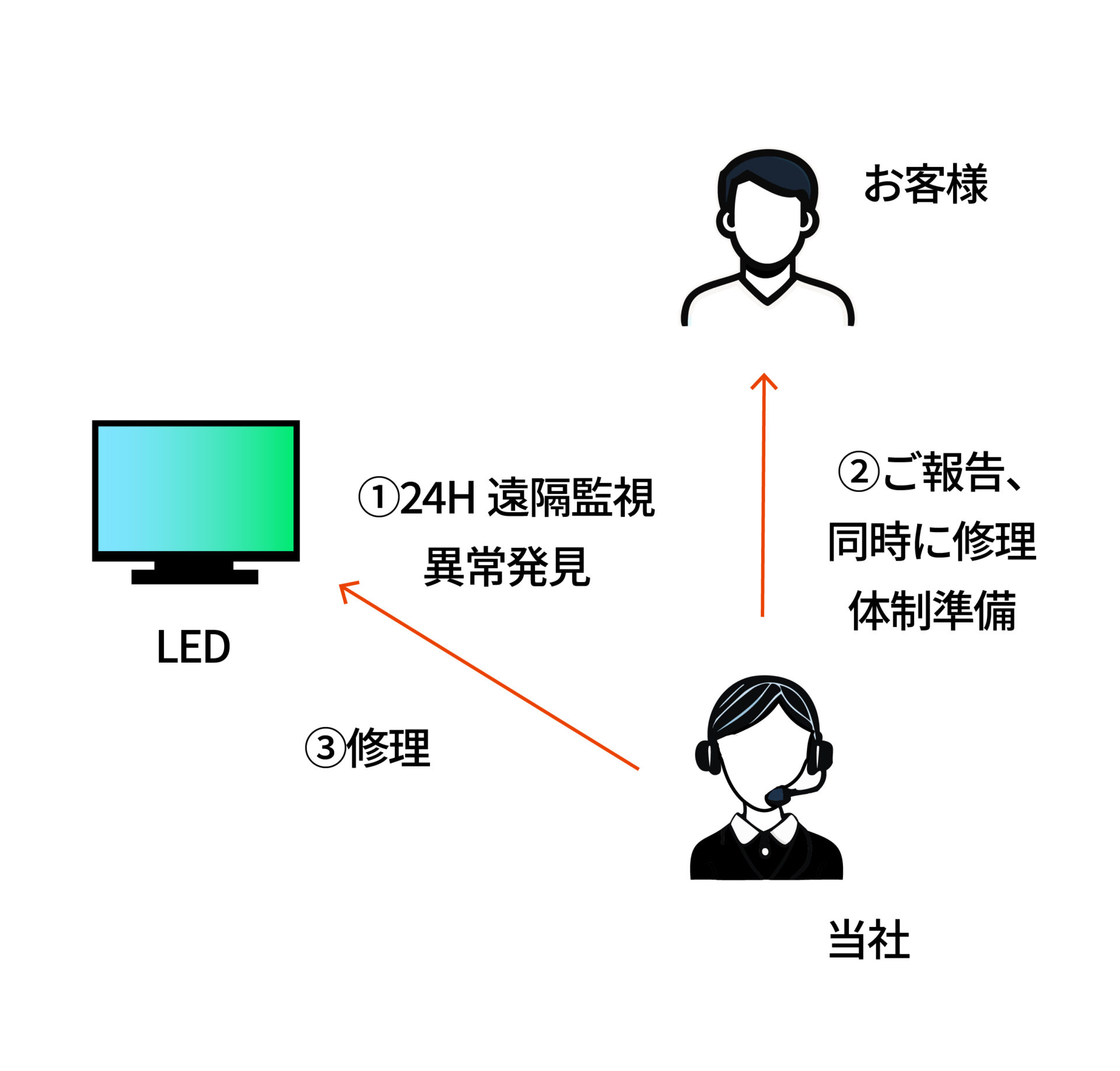 デジタルサイネージの状態をリモートで監視し、異常が発生した場合は迅速に問題を解決できるように支援するシステムです。